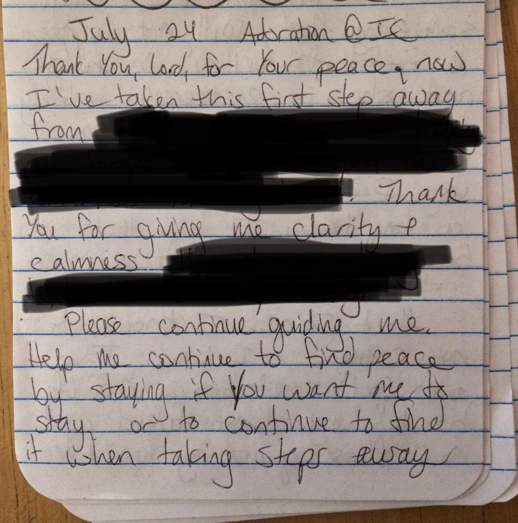 Author’s notes: Sections of the pages of my prayer journal have been redacted or cropped in the pictures for privacy purposes. The cross in the picture was made by Ian Wilson.