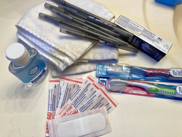 Many of these items wouldn’t require a new purchase. Most of us have good old towels and washclothes that can be freshly laundered and packed. After all, someone under a bridge trying to get the kid cleaned up while the storm is blowing isn’t going to be picky about a new label and a brand name.