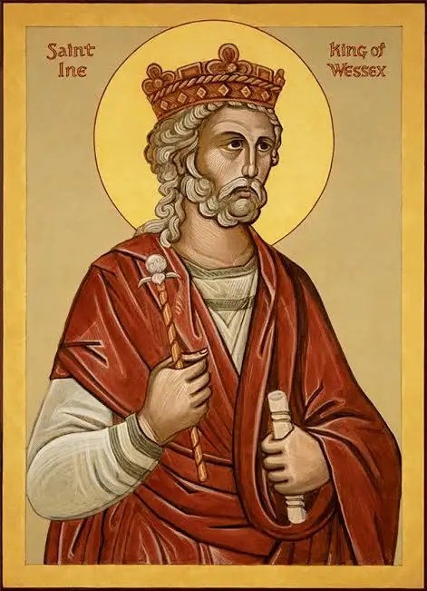 The name of the Saxon King Ine of Wessex may not mean much to modern day Christians; however, King Ine, Saint of the church, ruled with generosity, Christian charity and intelligence from 688 to 728. He is recognized as a Saint in both the Catholic and Anglican faith traditions for the body of laws created for the good of the Church and the people of his Kingdom.