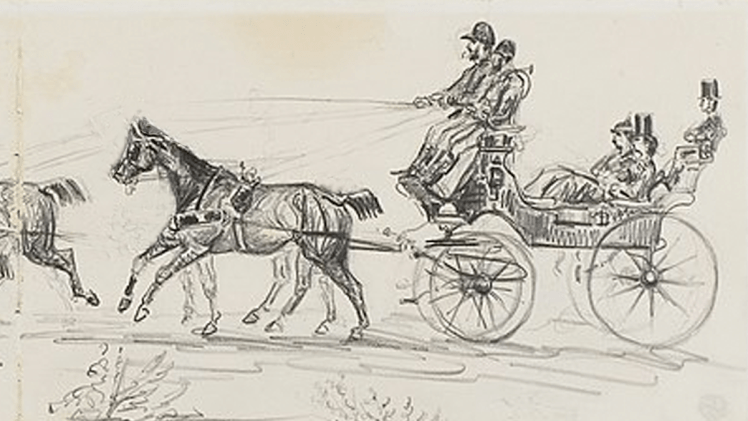 The clip-clop of horse hooves filled the air as carriages trotted along on cobblestone streets littered with patches of slowly melting snow. Cab drivers were bundled up in layers of blankets while wisps of white clouds came out of their noses. Snow had begun falling, making everyone want to rush home to cozy fireplaces and familiar faces. Stalls lined this particular street with vendors calling out their wares.